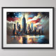Poster Bandeira Patriótica dos EUA sobre a Cidade Skyline