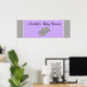 Poster de faixa de chá de fraldas de elefante roxo e cinza. Apresentando uma ilustração de elefante branco sobre fundo púrpura lilac com bolinhas de cinza. Perfeito para uma festa de chá de fraldas de menina! Gráficos © Scrappin Doodles em www.scrappindoodles.com