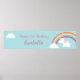 Tenham uma celebração mágica com esta bela faixa de festa de aniversário de unicórnio como parte da decoração da festa! Esta faixa colorida de poster de festa de aniversário tem um unicórnio fofo com mano e cauda cor doce de algodão rosa. Ele voa entre o arco-íris, a nuvem e as estrelas com suas minúsculas asas. Pequenas faíscas para aquele toque mágico. Um tema maravilhoso para a festa de aniversario de meninas! Personalize facilmente com a mensagem do seu partido.