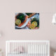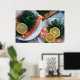 Poster mostrada com uma impressão fotográfica de um banquete de salmão que parece um excelente. Personalize este item ou comprar como está. Imagem do stock