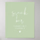 Este sinal de bar de snack apresenta uma fonte manuscrita bege e um design moderno minimalista com uma combinação vibrante verde pastel e branca. Altere facilmente as cores da fonte e a cor do plano de fundo para corresponder ao estilo do evento. Par com itens adicionais da Coleção LEAH para uma aparência coesa.