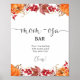 Poster de bar de abóbora laranja-mãe-osa. Folhas caídas, sinal de bar da amora momosa. Itens correspondentes disponíveis.