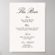 Este Cartaz de Cadeira de Casamento Preto e Branco Elegante e Personalizado adiciona um toque sofisticado ao seu bar de casamento. Concebido como um letreiro de bar de casamento elegante, destaca lindamente as bebidas assinatura do seu casamento e eleva qualquer exibição de sinalização de bar de casamento. Perfeito para ideias de bar de casamento, melhora a decoração do seu bar de casamento enquanto apresenta um menu de bar de casamento sofisticado. Ideal para uma configuração de bar de casamento refinada, este design atemporal encaixa-se perfeitamente em um casamento preto e branco, casamento italiano, casamento vitoriano e casamentos italianos vintage.