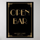 Excelente Dourado e preto de Arte Deco Gatsby casamento Abrir Bar com quadro de ouro e texto personalizável - você pode adicionar o nome da noiva e do noivo e a data do casamento. As dimensões do impressão de sinal (poster) são de 18 por 24 polegadas (vertical).