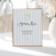 Sinal de bar mimosa, manuscrito, branco, com um limão desenhado à mão com um arco e tiras de cor azul macia
