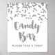 Poster de sinal de bar de doce para chá de fraldas, chá de panela ou casamento em padrão de confete branco e prateado com letra de estilo manuscrita. Perfeito para um chá de fraldas, casamento ou chá de panela.