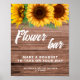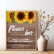 Placa de casamento de bar de flor simples e elegante com base no estilo rústico que usava madeira escura e girassóis. Use o quadro horizontal e aproveite a festa!