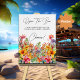 Um elegante sinal de bar tiki com flores e folhas exóticas coloridas! Você pode personalizar isso com sua própria mensagem.