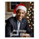 Este trabalho de arte tem o 44 do presidente dos EUA Barack Obama vestindo um chapéu de Papai Noel perto de uma árvore decorada.