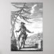 Barba Negra, cujo nome verdadeiro era provavelmente Edward Teach, foi um dos piratas mais infame da Idade Ouro da Pirataria no início do século XVIII. Nascer por volta de 1680 na Inglaterra, Teach ficou conhecido por sua aparência feia, caracterizada por sua longa barba preta, que lhe rendeu o moniker "Barba Negra". Entrou em pirataria nas Índias Ocidentais e depois ganhou notoriedade nas colônias americanas e no Atlântico Ocidental. A nave-bandeira da Rainha Anne, a Vingança da Rainha Anne, era um antigo navio escravo francês que ele equipava com 40 armas, que o fazer um navio formidável. A lenda da Barba Negra cresceu enquanto se engajava em atos de pirataria ao longo da costa americana e no Caribe. A sua reputação de impiedade e intimidação levou muitas vezes à rendição dos seus alvos sem lutar. Em 1718, uma expedição naval liderada pelo Tenente Robert Maynard, do Marinho Real, envolveu Blackbeard ao largo da costa da Carolina do Norte. Numa batalha feroz, Blackbeard foi morto, e sua cabeça foi cortada e pendurada do arco do navio de Maynard. A morte da Barba Negra marcou o fim da sua notória carreira pirata, mas a sua lenda e o mistério que rodeava o seu tesouro enterrado persistiram na tradição marítima durante séculos.
