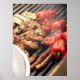 Vista aproximada da deliciosa grelha com carne e legumes.