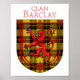 Barclay Scottish tartan xadrez para a família Barclay Clan debaixo do Red Lion Rampant Shield da Escócia.