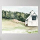 Watercolor Barn III, por Jennifer Paxton Parker. Possui um celeiro branco fora do lado em um campo com árvores.