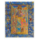 "Bast the Light-Bringer" Um ícone kemético original de Ptahmassu Nofra-Uaa, ligado à memória de Lady Olivia Robertson, sacerdotisa de Isis e cofundadora da Fellowship of Isis - obra original: coloração de água mineral extrínseca, ouro 22 k, pedras de precioso e semirprecioso, cristal austríaco em 8" x 10" Em "Bast the Light-Bringer", vemos a Deusa em frente à Árvore Ishing ao amanhecer. Era a época do dia em que, de acordo com os mitos solares, o Sol-Deus Ra renasceu depois de Sua luta noturna excelente contra a Apep-da-serpente-demônio. Foi no amanhecer quando o sangue da Apep foi derramado através do céu leste, que lê como a mancha rosa brilhante se espalhando pelos céus logo no nascer do sol. Vemos o cenário primário nesse mito acontecendo na base da Árvore Isca, onde o Livro de Vindo Frente por Dia, Pert-em-hru, o chamado "Livro do Morto", nos diz que o Excelente Tomcat despacha a serpente demoníaca com sua faca. Sabemos que a Deusa Bast também estava associada ao Excelente Tomcat, e essa é a associação que está sendo feita nesse ícone. Em vez de decapitar a Apep com uma faca, a Bast como o Tomcat recebeu longas unhas prateadas, que se fixam e cortam através das escalas da serpente. A árvore galhada é a árvore sagrada de Ra em Annu ou Heliópolis, cujas folhas foram escritas com os nomes e anos de vida de todos os reis do Egito. Nesse caso, a presença da Árvore Isca incorpora a ordem de vida adequada no cosmos, a ordem divina ou as Mães estabelecidas por Ra. De certa forma representa também o próprio Sol-Deus Ra, indicado pelos alivios levantados de algumas folhas, que foram douradas com 22 quilates de ouro. Dourado representa a pele do Sol-Deus, sua natureza indestrutível. As aves nesse ícone são usadas não apenas como símbolos da vida, o poder da vida para superar a morte, mas também como símbolos do Sol-Deus, que Lady Bast representa. Estes são os rebuçados, andorinhas ou martins, que ficam na proa do quartel noturno do Sol-Deus, e saudam Seu progresso triunfante contra a noite caótica. Uma andorinha fica virada para a direita e uma para a esquerda; estas são as direções de oeste e leste respectivamente. A raiz do nome de Bast é 'bas', um boião de pomada, pelo que parece que o nome Bast ou Bastet significa algo como 'Ela do boião de pomada'; que é apenas uma interpretação. Um pote 'bas' foi colocado na Árvore Ishing como uma representação do nome de Bast, mas também como uma personificação do seu poder, Sua natureza arrogante, que sempre foi muito solar, associado a Ra o Sol-Deus. Bast é chamado de 'Olho de Ra', e nela ela se assume o papel de força destrutiva ou defensiva de Ra, que dispara como fogo para incinerar os inimigos do Sol-Deus. O pote 'bas' foi modelado fielmente com base no hieroglifo do pote de pomada, que foi modelado por um tipo específico de pote de alabastro com a sua tampa bem selada. Bastet era originalmente uma deusa de leoa, na era da pirâmide quando ela se manifestou como algo muito feroz e bélico. Esse caráter defensivo e protetor de Hers é citado mais sutilmente nesse ícone, não predomina, porque o propósito desse ícone é convocar os aspectos muito mais benignos da Deusa, Suas qualidades como fonte compassiva de proteção materna. Essas características iradas Ela tem como leoa, como o Olho de Ra, foram atenuadas nesta representação da Deusa. Atrás da Bast vemos uma cena menor do Excelente Tomcat atirando Apep, para homenagear o antigo caráter guerreiro de Bast. Mais tarde, a associação de Bast com o gato doméstico passou a dominar Sua iconografia, e por ser esse o aspecto de Ela que os devotos contemporâneos gravitam, ela foi representada aqui em sua forma de gato. A íntima relação de Bast com Ra se soletra na presença do grande Olho de Casamento, seu falcão talão chegando para trocar uma bênção do poder com a Deusa. O Wedjat Eye é sempre usado como símbolo da energia solar e, nesse caso, é usado para designar a potência criativa de Ra como originadora do cosmos. A Deusa carregar sobre Sua cabeça o disco ou a face do Sol, que os egípcios usavam como determinante para o nome de Ra. Na verdade, o nome de Ra pode ser escrito apenas com o disco solar, tendo um ponto no centro. Para isso, foi colocado no centro um sumptuoso rubi estrelado indiano. Antes de mais dos símbolos de Bast, e o símbolo primário usado em todas as antigas imagens da Deusa, é o Sistrum, que os egípcios chamavam de sesheshet, um chocalho cerimonial amado dos deuses. Este é um objeto ritual altamente carregado, usado principalmente por cantores ou sacerdotes nos templos. Bast parece ter sido associado à música e à alegria que ela traz desde quase o início da iconografia Dela, e é praticamente inseparável dela; então, nesse ícone Dela, vemos o Décio como uma personificação do poder Dela e da luz que ela traz. Notem como as chamas multicoloridas disparam da base do chocalho e escrevem para cima. Estas podem ser pensadas como música, à medida que o poder sagrado que está sendo produzido como a Deusa trepa seu pulso para frente e para trás para criar o som alarmante. Dois dos outros símbolos importantes do Bast são o colar de menta e o escudo sagrado. O menat é um objeto ritual fortemente carregado, estreitamente associado à adoração de deusas como Hathor e Bast, e foi usado como forma de chocalho, tendo um contrapeso em uma ponta que era mantida por sacerdotes. A Bast tem uma almofada decorada com folhas de lótus de ouro e uma roseta de dezesseis pétalas, no centro da qual foi colocado um cristal austríaco de cor rubi. Duas cordas de miçangas conectam o menat ao escudo-egis, que tem no seu centro uma pequena imagem de Bast como uma leoa, prestando tributo a Suas raízes. Os hieróglifos que enquadram a Deusa leram: Aplique o Excelente, Bastet Who é a Enchantagem Excelente. Bastet a Senhora do Céu, que é a Senhora da Iluminação, a bela face como o Olho de Ra.
