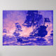 PÓSTER BATALHA DE NAVIO EM AZUL E ROSA