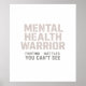 Este design capta lindamente a calma resiliência de um "Guerreiro da Saúde Mental". É uma homenagem à força interna necessária para combater batalhas que são muitas vezes invisíveis, oferecendo uma mensagem de solidariedade e esperança. Use esta design para provocar conversas e reduzir o estigma em torno da saúde mental.