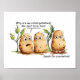 Foto/ilustração em quadrinhos de batata cômica e engraçada. Por que somos chamados de batatas? Não temos dedos. Um tem pés grandes com dedos grandes e diz: Fale por vocês mesmos. Batatas castanhas engraçadas Desenhando Design de Arte. Imagem gráfica humorística. Desenho de Irony Design Donna Léger.