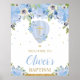 Belo Batismo Floral Ar Quente Floral Azul / Sinal de Boas-Vindas Christening. Personalize seus detalhes de forma fácil e rápida, basta pressionar o botão personalizar para reorganizar e formatar o estilo e a colocação do texto. Itens correspondentes disponíveis no repositório! c) O Feliz Cat Studio