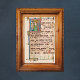 O Batismo de Jesus Cristo de João Batista - Manuscrito Iluminado Medieval. Velha Folha de Música Medieval com Pontuações para o Canto Gregoriano. É extraído de um antifonário ilustrado do século 13. Ele apresenta o texto latino para o banquete: "Hodie in jordane baptizato domino...". Significa: "Hoje o Senhor foi batizado no rio Jordão..." trabalho de arte musical, espiritual e artístico excelente da Igreja Católica e cultura e história cristãs. Ideia de presente de excelente para um batismo tradicional cristão.
