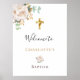 Poster Batismo eucalipto branco de ouro floral é bem-vind
