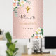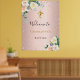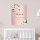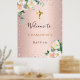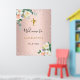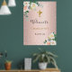 Poster Batismo rosa dourado flores rosa menina bem vinda
