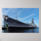 Ângulo largo aproxima-se da nave de batalha USS Wisconsin, arco a popa, ao lado do píer no centro Norfolk, Virgínia.