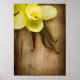 Póster Baunilha Pods e Flores sobre fundo de madeira