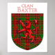 Baxter Scottish tartan xadrez para a família Baxter Clan debaixo do Red Lion Rampant Shield da Escócia.