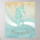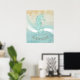 Esta poster de acabamento mate, nas cores suaves do mar e da areia, permite que você adicione facilmente seu próprio nome e texto usando o modelo fornecido. A simples imagem do cavalo de mar sobre um fundo angustiado e aquoso é destacada por um sotaque de onda em aqua e branco. Procure ID623 para ver a coordenação de elementos à beira-mar e produtos adicionais com este design.