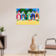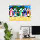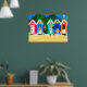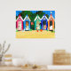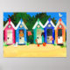 Um grande poster de uma colagem de papel pintada à mão de cabanas de praia.