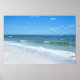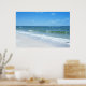 Linda praia branca arenosa com ondas de golfe gentis e um céu azul brilhante, uma cena muito relaxante.
