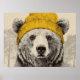 Poster Bear in Yellow Beanie Rustic Woodland Animal