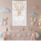 Celebrate your little one’s special day with this Beary Sweet Hot Air Balloon Birthday welcome sign! Featuring a watercolor bear cub floating in a patterned balloon among soft clouds and stars, this dreamy blush pink and beige design adds a gentle, whimsical touch to your baby girl’s first birthday celebration. Fully customizable with your child’s name, date, and party details.