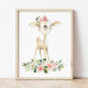 Poster Bebê, Animais Da Floresta, Boho, Flores Rosa