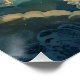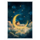 Uma bela ilustração digital de um bebê dormindo em uma lua crescente.