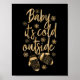 Este belo poster de "Bebê está frio lá fora" com flocos de neve e luvas é a decoração perfeita de férias de inverno. Esta é uma folha de ouro falsa. Não será utilizada nenhuma folha de alumínio real no fazer deste produto.