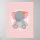Poster Bebê Elefante Fofo Rosa Cinza