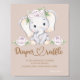 Elefante bebê com poster de rifa de fralda de flores. Itens correspondentes disponíveis.
