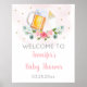 Toda mãe merece um dia especial para comemorar! Bem-vindos aos seus convidados chás de fraldas com um sinal personalizado adorável. Enquadre o sinal e exiba-o numa mesa perto da entrada ou monte a espuma poster e mostre-a fora em um calcanhar. O design apresenta florais de aquarela com uma garrafa de cerveja e bebê e um confete de ouro falso.