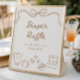 Celebrar os pais a serem com este bonitinho sinal de rifa de fralda, sem distinção de gênero, para download, com ilustrações temáticas de café desenhado à mão e fontes brancas e escritas à mão.