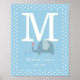 Poster de berçário de monograma inicial bonito, com o nome do seu bebê e o ano em que eles chegaram com amáveis bolinhas pais e bebês elefantes. Um bom tesouro!
