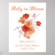 bebê no Poster de boas-vindas ao chá de fraldas floral cor de laranja floral