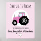 Póster Bebê Rapariga Doodle Pink Fazenda Trator Name Nurs