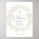 Bem-vindos convidados ao Batismo do seu bebê ou ao evento religioso especial do seu filho com este belo sinal, com uma coroa aquática das flores do Breath do Bebê. Adicione o nome do convidado de honra, a data do evento e o texto de boas-vindas personalizado usando os campos fornecidos.