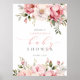 Bebê rosa no Bloom Girl Chá de fraldas Sinais de boas-vindas apresenta lindas flores florais rosa e verde, juntamente com caligrafia moderna.