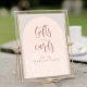 Sinal de chá de fraldas cor-de-rosa pastel e castanho de cobre para mostrar aos hóspedes onde colocar seus presentes e cartões. Este símbolo flexível e feminino é tudo o que você precisa para carregar o tema durante o seu evento.