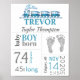 Os "Baby Birth Stats" Assinam com Trem Azul e Pegada. Basta adicionar toda a informação de nascimento do bebê. Sexo neutro.