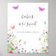 Convide seus convidados para tratarem com esta elegante placa de chá de fraldas que inclui um bonito jardim de flores silvestres adornado com borboletas azuis, rosa e roxas. Perfeito para chás de fraldas de sexo neutro, rapazes ou raparigas. Personalize-os com seus detalhes e utilize a ferramenta de edição para fazer outros ajustes, como tamanho da fonte, posicionamento ou cor.