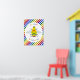 Este poster apresenta uma design gráfica colorida arco-íris de uma abelha. A abelha tem um corpo amarelo com olhos negros, pernas e antenas e 5 listras no ventre, uma em vermelho, laranja, verde, azul e roxo. Há um texto colorido do arco-íris ao redor da abelha que diz "Bee orgulhosa Bee quem você é" Há também uma seleção de flores coloridas do arco-íris no fundo.