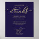Poster Bebidas com Assinatura Chic Dourado Script Azul Ma